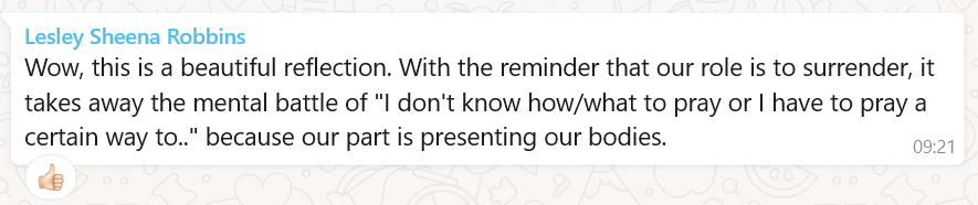 - We present our bodies as vessels of/for prayer to take place. (Romans 12:1)