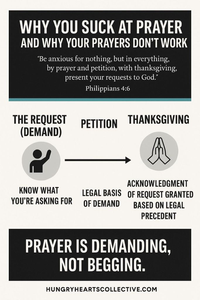 Prayer, for most, is a mystical, passive whispering to the heavens—half apology, half desperation. But this is not the biblical model. You don’t suck at prayer because God doesn’t hear. You suck at prayer because you don’t understand what prayer is.