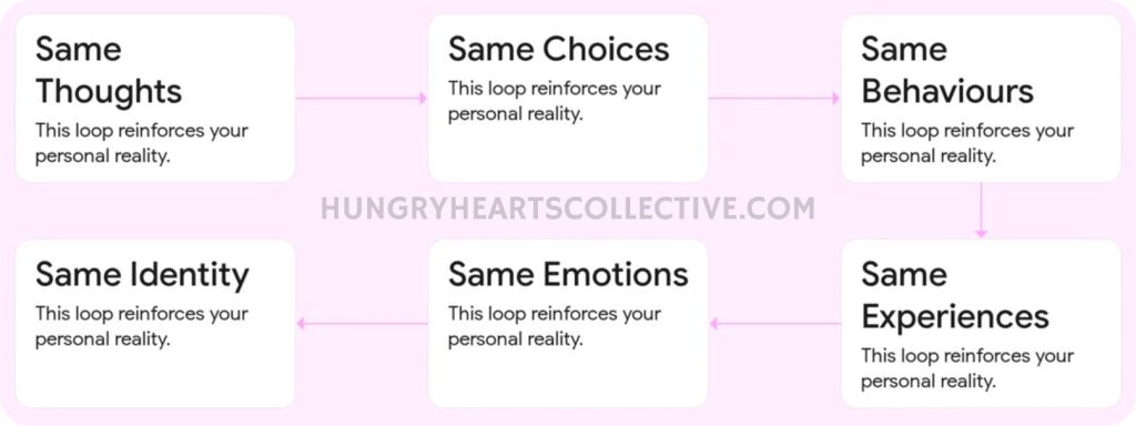 Same thoughts → same choices → same behaviours → same experiences → same emotions → same identity.