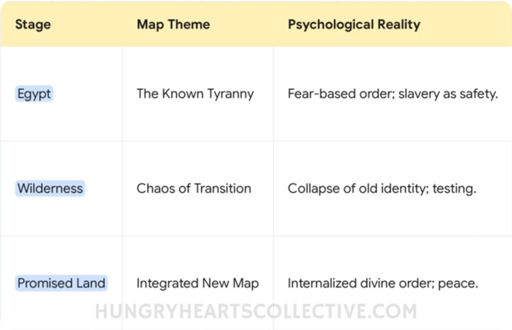 Jordan Peterson would call this “the confrontation with chaos.” Joseph Campbell would call it “the road of trials.” Scripture calls it sanctification. When old patterns (slavery) dissolve, the self feels naked. The weak mind panics, but the strong mind perceives: the wilderness is where the old map (identity) dies so the new one can be drawn.